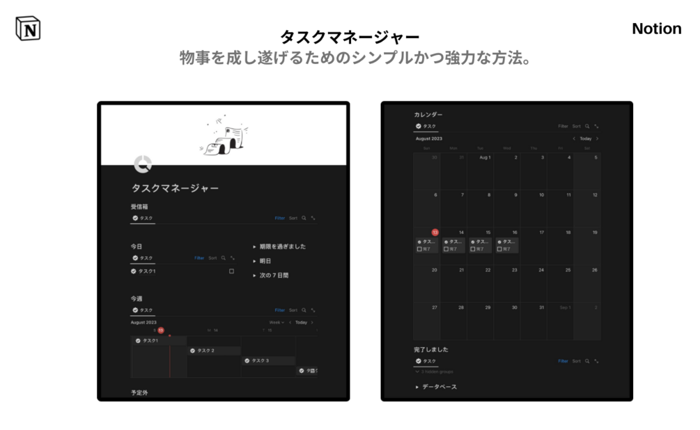 * カレンダー: タスクと期限をカレンダーで管理できるので、見逃すことはありません。